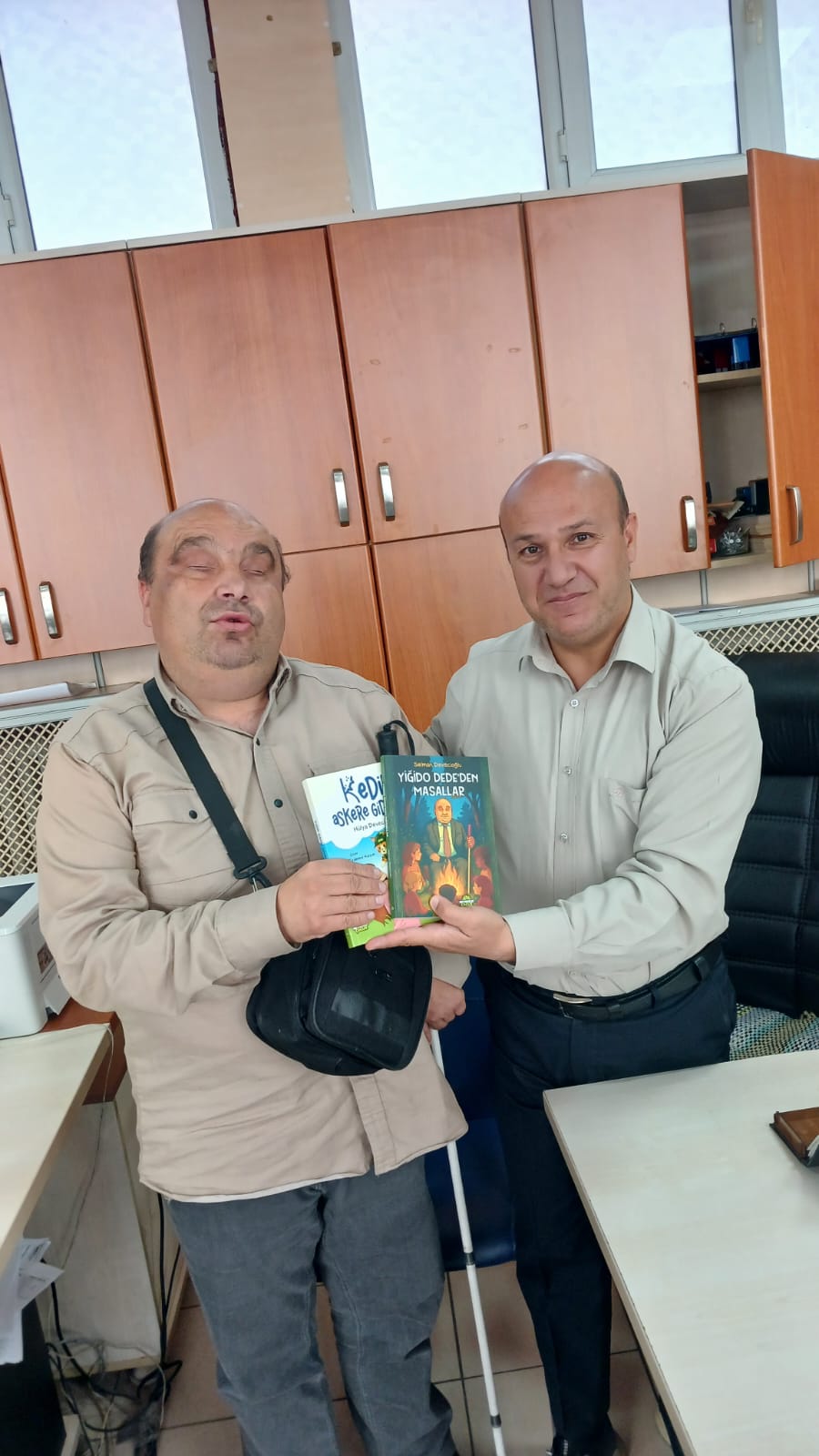 Azmiyle takdir toplayan görme engelli eğitimci Selman Devecioğlu, Sivasbiliyor sosyal medya Haber editörümüz Ali Canikligil’i ziyaret ederek kendi yazdığı “Yiğido Dededen Masallar” ile eşi Hülya Devecioğlu’nun ilk eseri olan “Kedim Askere Giderse” isimli kitabını hediye etti.